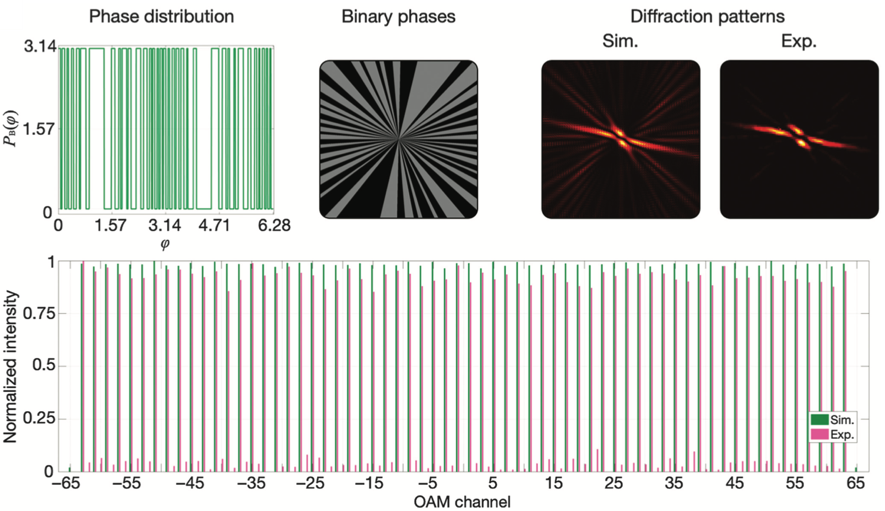 相位渦旋光束是一種攜帶有軌道角動量(OAM)的新型結構光束,在超大容量光通信、新體制激光雷達、激光加工、高密度光存儲、高分辨率成像、量子技術等領域有著廣泛的應用前景,吸引了國內外學者的廣泛關注。特別是在超大容量光通信領域,由于相位渦旋光束攜帶的OAM具有無窮個本征值,且不同的OAM模式相互正交,使得其不僅可作為信號載波以模式復用的方式來拓展信道容量,還可用于超高維數字信號編碼,通過提升光子效率的方式間接拓展信道容量。實現復雜渦旋光場的按需調控是實現上述應用的必要條件之一,然而當前復雜渦旋光場調控方面仍存在許多尚未解決的科學問題及技術瓶頸,例如,多模復用高維OAM調控較為困難,光束OAM譜的測量的泛化能力較弱,OAM模式分布切換響應時間長等,阻礙了渦旋光束的實際工程化應用。
