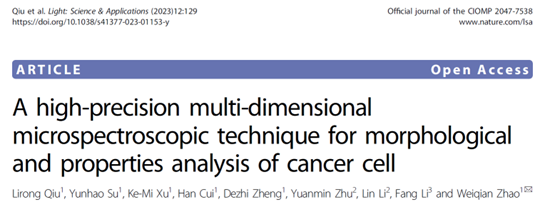 北京理工大學光電學院趙維謙教授課題組提出了具有高穩定、高分辨、抗散射的激光差動共焦拉曼-布里淵圖譜成像新原理,研制成功了相應的儀器,實現了樣品三維形貌、力學性能和化學組分的多維信息檢測,并與北京大學航天臨床醫學院(航天中心醫院)合作,利用該研制儀器對腫瘤組織進行了有效表征分析。相關工作發表在Light: Science & Applications上 (Light: Science & Applications,12, 129 (2023))。該研究工作以北京理工大學為第一通訊單位,趙維謙教授為通訊作者,邱麗榮教授為論文的第一作者。
