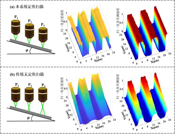 (a)經典共焦光譜系統成像(模糊) (b) DLDCRB光譜系統成像(清晰)