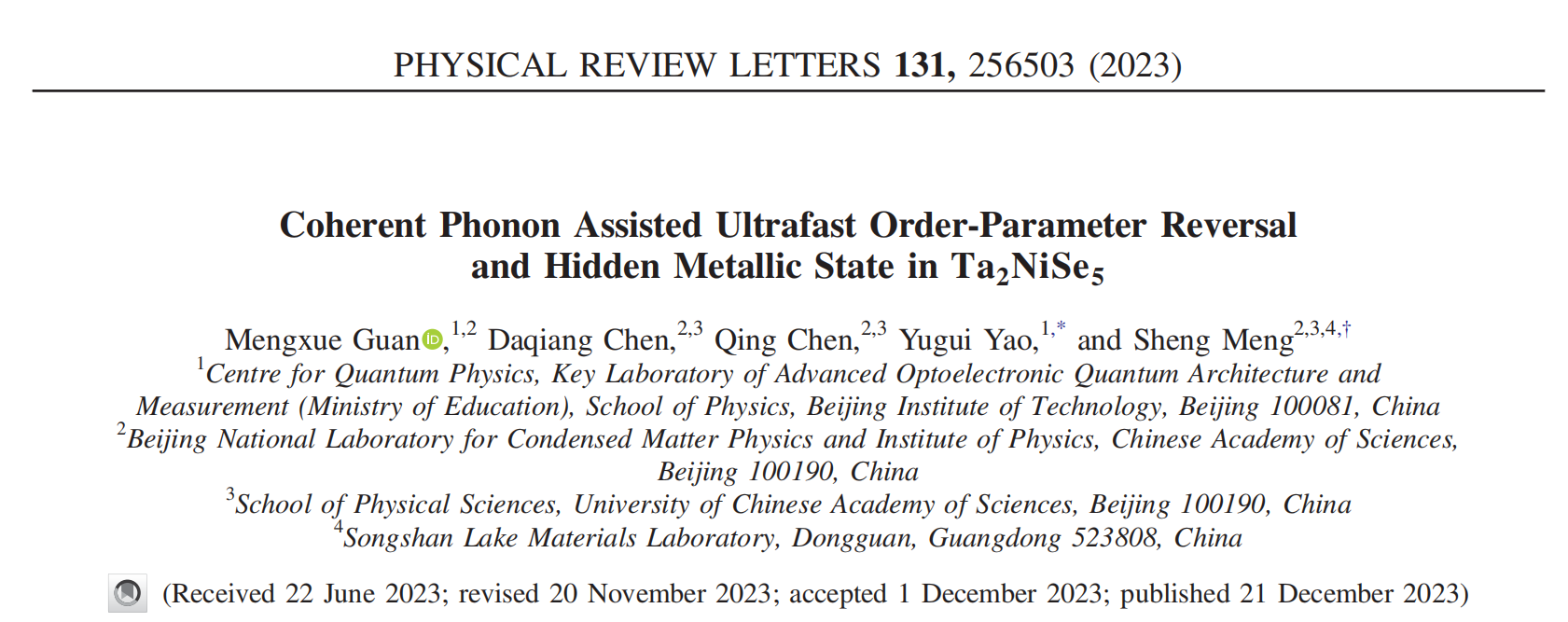 編輯:王莉蓉 審核:陳珂 閱讀次數(shù):日前,北京理工大學(xué)物理學(xué)院姚裕貴、關(guān)夢(mèng)雪特別研究員和中國(guó)科學(xué)院物理研究所的孟勝研究員團(tuán)隊(duì)展開合作,利用非絕熱含時(shí)密度泛函分子動(dòng)力學(xué)(TDDFT-MD)方法深入探究了Ta2NiSe5中的非平衡多體相互作用。研究明確了晶格序參量在光誘導(dǎo)絕緣體-金屬轉(zhuǎn)變過(guò)程中的關(guān)鍵作用,為理解關(guān)聯(lián)量子材料中激子-聲子動(dòng)力學(xué)提供了全面的視角。相關(guān)研究題目為《Coherent Phonon Assisted Ultrafast Order-Parameter Reversal and Hidden Metallic State in Ta2NiSe5》,成果被發(fā)表在物理學(xué)領(lǐng)域的頂級(jí)期刊Physical Review Letters上。