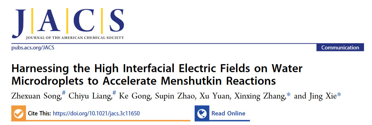 編輯:田柳 審核:王振華 閱讀次數:近日,北京理工大學化學與化工學院謝靜教授團隊和南開大學張新星教授團隊合作,在微液滴加速有機化學反應方面取得進展。相關研究成果以“Harnessing the High Interfacial Electric Fields on Water Microdroplet to Accelerate Menshutkin Reactions”為題發表于國際權威期刊《Journal of the American Chemical Society》。北京理工大學謝靜教授和南開大學張新星教授為論文共同通訊作者,北京理工大學為第一單位。該研究課題得到了國家自然科學基金項目、北京理工大學特立青年學者項目等資助。