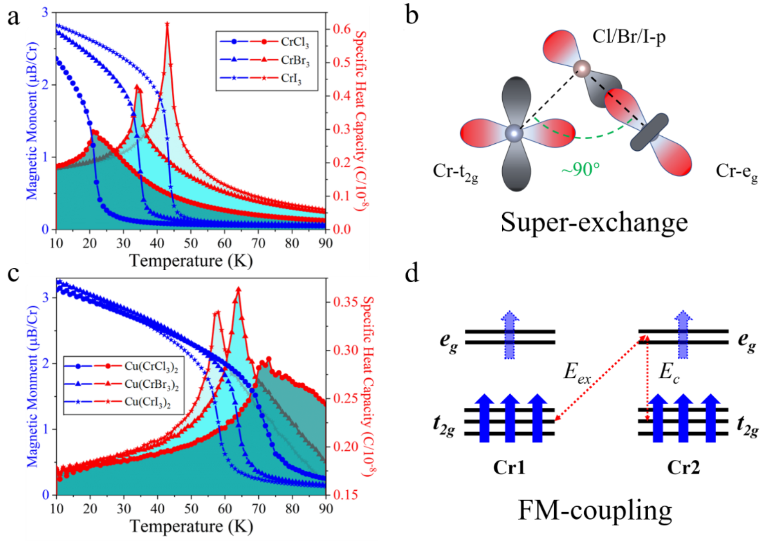 圖3 CrX3和Cu(CrX3)2的磁性