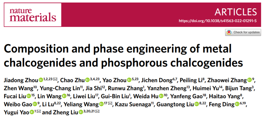 北理工團(tuán)隊(duì)在低維金屬硫族/磷硫族化合物的組成與相工程方面取得重要研究進(jìn)展