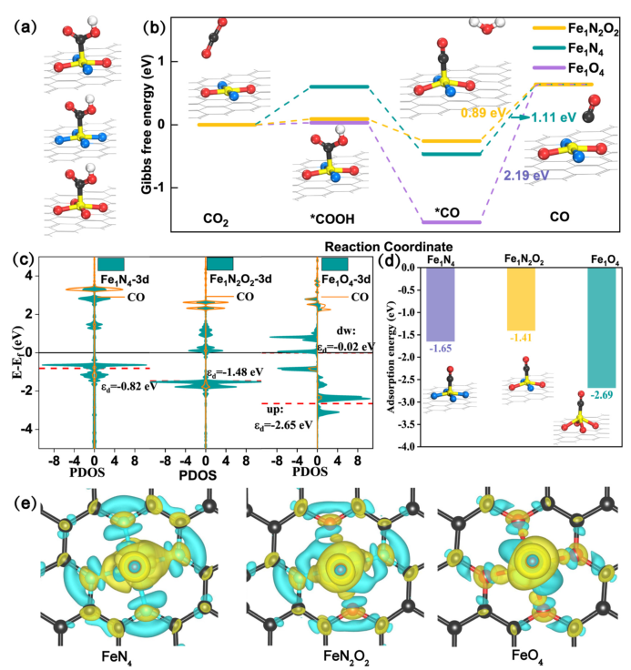 圖4. 理論計算揭示Fe1N2O2/NC催化劑優異性能的原因
