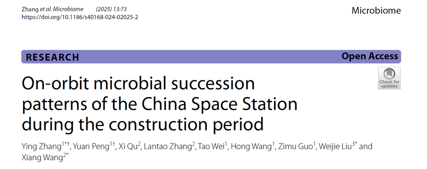 編輯:肖雯 審核:常非 閱讀次數:近日,北京理工大學張瑩教授在微生物組學國際頂級期刊《MICROBIOME》(平均5年影響因子:17.9)上發表了題名為“On?orbit microbial succession patterns of the China Space Station during the construction period”的學術研究論文。該論文以北京理工大學生命學院作為第一通訊單位,中國空間技術研究院北京飛行器總體設計部為第二通訊單位,張瑩教授與其碩士研究生彭園作為共同第一作者,張瑩教授和空間站系統總指揮王翔研究員為共同通訊作者。