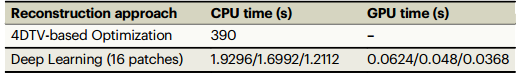 表1 基于四維全變分的優化方法和深度學習方法的重構時間