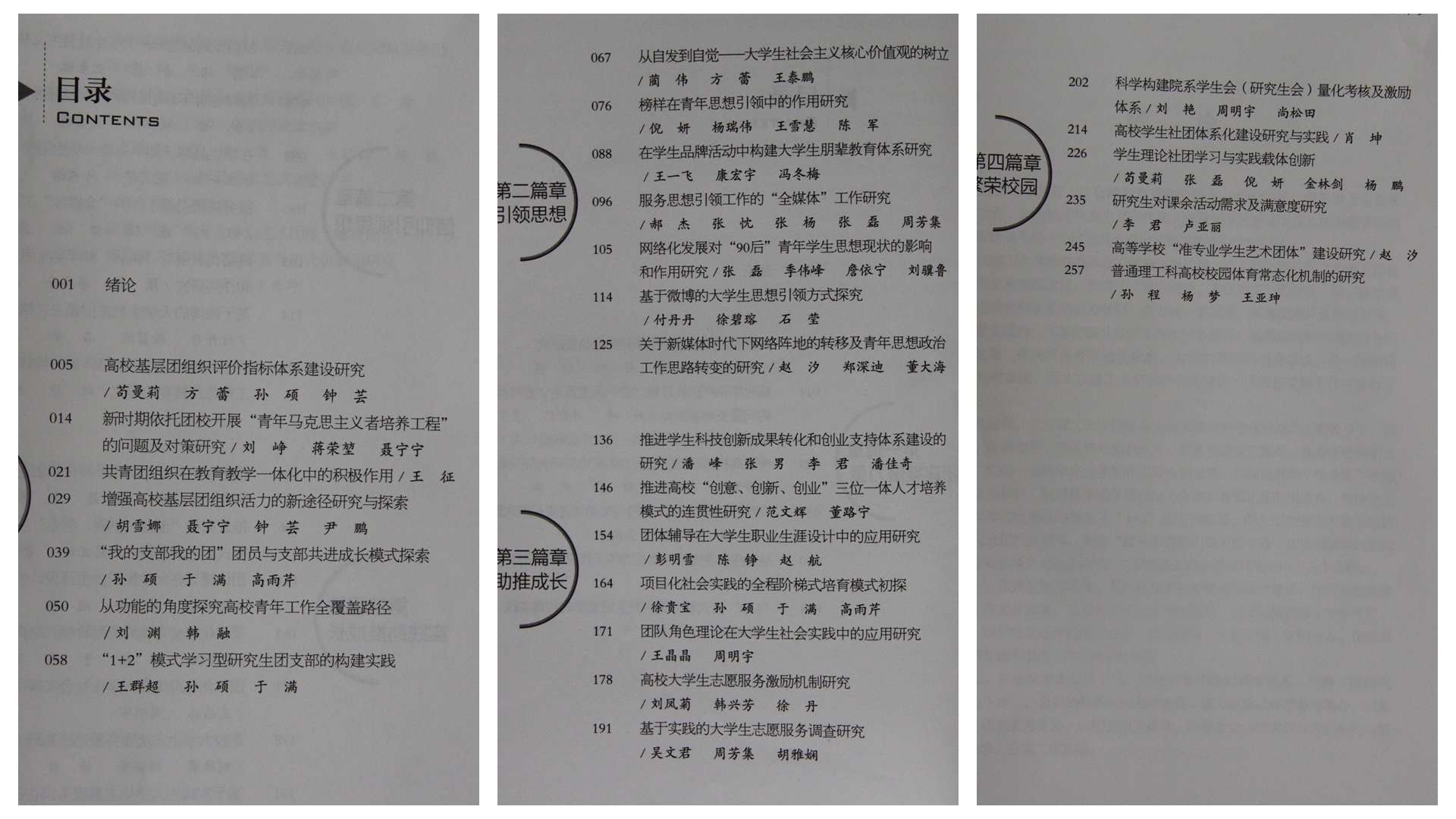 《德學(xué)研思》全書26.8萬字,共有27篇文章,文章初稿均源自全校團干部的積極研究與實踐,是一本具有鮮明共青團工作特色的研究文集。收入本書的文章為編者在此基礎(chǔ)上進行進一步深化研究與總結(jié)而成,共分為“團建凝聚力量”、“信仰引領(lǐng)思想”、“實踐助推成長”、“文化繁榮校園”四個篇章,這既是對高校共青團工作開展具有指導(dǎo)意義的理論成果,同時也反映出北理工共青團隊伍的專業(yè)化建設(shè)水平和廣大團干部勇于進取、不斷創(chuàng)新的工作激情。