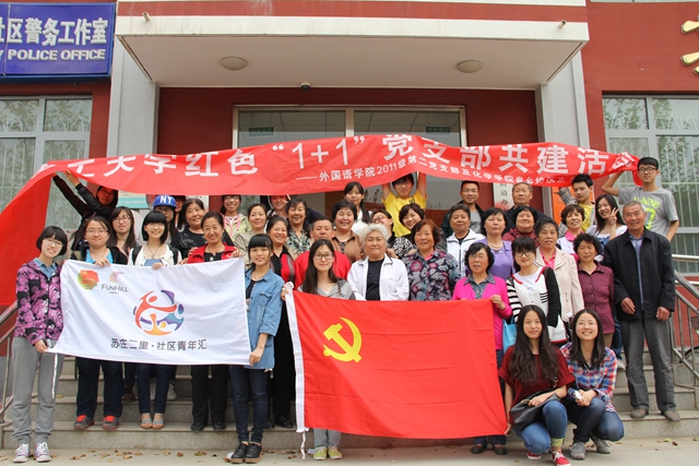 在紀念“五四運動”九十五周年到來之際,以深入基層,了解社會為目標,北京理工大學外國語學院本科生第二黨支部聯合化學學院良鄉校區本科生第一黨支部與良鄉蘇莊二里社區黨支部開展了紅色“1+1”黨支部共建活動。經過了多次溝通和充分的準備后,5月9日,在母親節即將到來之際,同學們前往蘇莊二里社區與老人們進行了近距離的交流,獻上大學生對老人們良好的祝愿,拉開了紅色“1+1”黨支部共建活動的序幕。