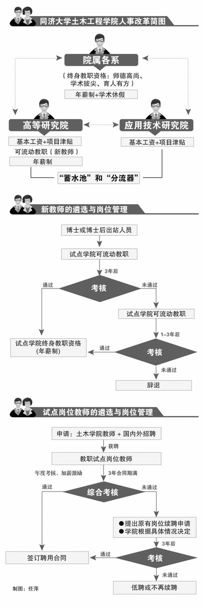 躋身國家首批試點學院的同濟大學土木工程學院,這個學期也啟動了新的人事管理辦法。學院的最新一輪改革目標明確:在聘任、晉升、薪酬、考核評價等涉及人事制度核心的環節作出改革、改良,用好制度留住好老師,讓好老師帶出好學生。