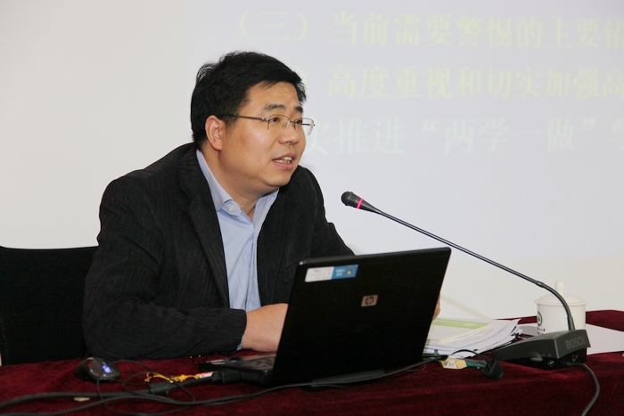 祝念峰從自身學習思考的體會談起,深入解析了習近平總書記的黨建思想,指出全面從嚴管黨治黨在黨建工作中的重要性,結合高校工作實際,就做好高校意識形態工作、扎實推進“兩學一做”學習教育、注重學與做的結合等提出了工作建議。