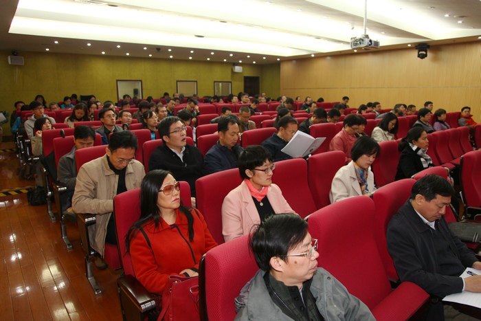 各黨群部門負責人,各基層黨委、黨總支、直屬黨支部書記,教師黨支部書記共100余人參加了報告會。