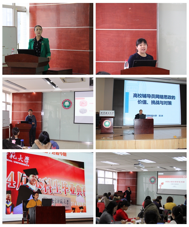 培訓基地邀請了北京市委教育工委組織處處長李麗輝、北京理工大學學生工作(研究生工作)部部長郭彥懿、馬克思主義學院黨總支書記李德煌、黨委組織部副部長周波、北京工業大學學生工作處副處長李振興、北京理工大學計算機語言信息處理研究所副所長張華平、設計與藝術學院黨委副書記副院長孫飛、法學院黨委副書記副院長張愛秀、人文與社會科學學院黨委副書記副院長李冰、“大冰輔導員工作室”負責人劉冰、2015-2016年度北京高校“十佳輔導員”倪佳琪等進行主講。