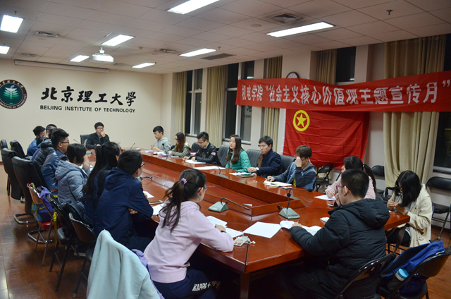 2017年3月17日、21日,北理工機電學院團委分別組織中關村、良鄉兩校區全體團支書召開會議,部署“青春喜迎十九大 不忘初心跟黨走”主題教育活動,并結合“社會主義核心價值觀主題宣傳月”活動,開展“與信仰對話”主題團課。機電學院研工委書記鄧巖、輔導員姜春宇、柳博文等專職團干部參加會議,機電學院兩校區本碩博各年級團支部書記參會。機電學院團委書記于滿主持會議。