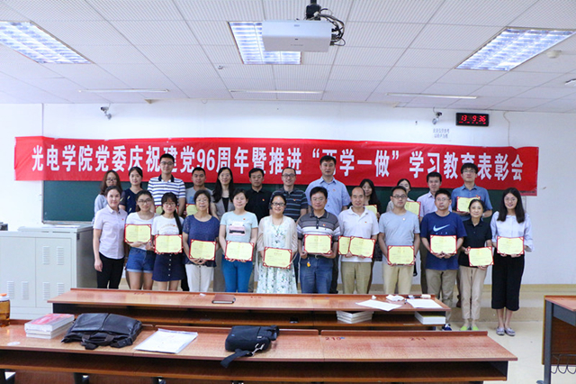 盛筠副書記宣讀了《光電學院“先進黨支部”、“優秀共產黨員”、“優秀黨務工作者”的表彰決定》。學院領導為獲得表彰的先進集體和個人頒發了榮譽證書。