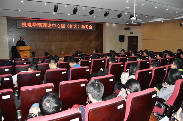 2017年10月19日下午,機電學院在圖書館報告廳召開中心理論組學習(擴大)會,邀請學校黨委宣傳部部長包麗穎同志作題為《意識形態(tài)工作的形勢和要求》的講座。會議由學院黨委書記王偉主持。理論中心組全體成員、全體黨支部書記、系/所教學副主任、長期負責學生思想政治教育的老師及部分學生骨干等近70人參加學習。