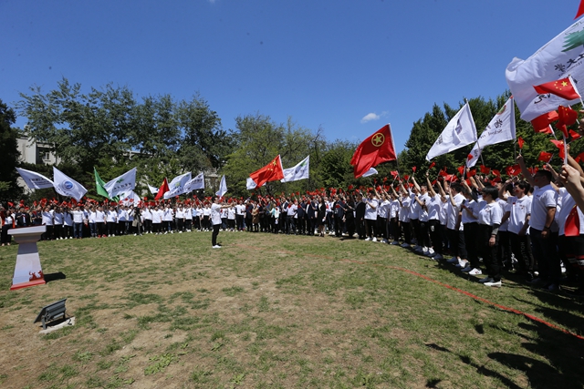 中午時分,觀看過大會實況的師生們紛紛從校園四面八方齊聚學校中心花園,參加一場特別的學習教育活動。校長張軍院士、黨委副書記包麗穎教授,北理工思政課教師崔建霞教授,北理工校外輔導員、中國兵器北化研究院集團遼寧慶陽特種化工有限公司黨委書記、董事長楊世澤,材料學院黨委書記張青山、院長龐思平,學校有關部處負責人、書院/學院副書記、青年教師以及輔導員班主任等走進青年學生中間,與同學們共同再次品讀習近平總書記重要講話精神,帶動北理工師生對重要講話精神的學習理解走進心扉里、走進信念里。