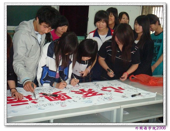 為了響應(yīng)學(xué)校黨委研究生工作部關(guān)于在研究生黨支部中開展“爭優(yōu)創(chuàng)先”主題競賽活動的通知,加強學(xué)院的研究生黨建工作,推動研究生黨支部戰(zhàn)斗堡壘作用和研究生黨員先鋒模范作用的發(fā)揮,外國語學(xué)院2007級研究生第二黨支部于5月16日聯(lián)合北京機械工程學(xué)院開展了“心系奧運,祝福北京”的主題實踐活動。本次活動經(jīng)過周密組織和細心安排,得到了學(xué)院老師和同學(xué)們的大力支持。參加本次活動的包括支部全體黨員、入黨積極分子及機械工程學(xué)院的奧運志愿者們。