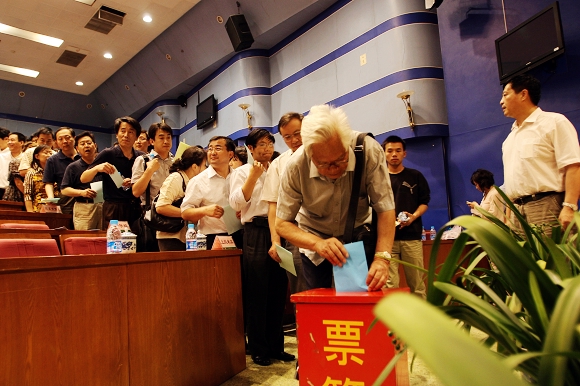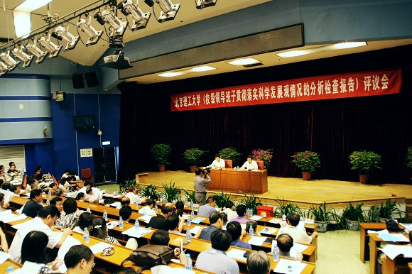 與會代表認真聽取了郭大成書記所作的情況通報和胡海巖校長所作的幾點說明的講話,認真閱讀了會議下發的《北京理工大學校級領導班子關于貫徹落實科學發展觀情況的分析檢查報告》,以無記名形式填寫了評議表,并在工作人員的監督下順次投遞了評議表。