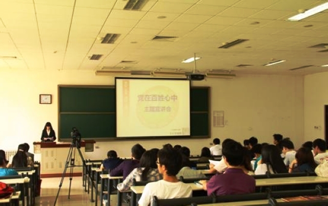 2012年5月15日,一場主題為“黨在百姓心中”的宣講會在良鄉理教101教室舉行。參與本次宣講會的有信息學部和文科學部的部分同學,信息學部輔導員王兆宇老師也作為嘉賓應邀出席。宣講會請到了北京理工大學京工演講團的五位同學,由他們擔任宣講員。他們的演講或慷慨激昂,或鮮活生動,通過一個個榜樣的事跡,樹立了黨在大家心中的形象。