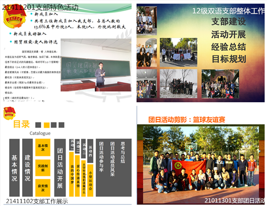 11級(jí)國(guó)際經(jīng)濟(jì)與貿(mào)易2支部打破了年級(jí)的界限,主動(dòng)與低年級(jí)的團(tuán)支部進(jìn)行交流,幫助他們解答學(xué)習(xí)生活中的困惑;在團(tuán)支部?jī)?nèi)部開(kāi)展心理咨詢活動(dòng),創(chuàng)造團(tuán)支部?jī)?nèi)部健康陽(yáng)光的氛圍;組織“大學(xué)畢業(yè),我們?cè)撟鍪裁?rdquo;的主題座談會(huì),規(guī)劃未來(lái)、暢聊愿景、互相鼓勵(lì)、共同努力。13級(jí)工商管理1班團(tuán)支部在宣傳工作方面能夠敢于創(chuàng)新,在向大家展示的一段視頻中,記錄了團(tuán)支部一年來(lái)的點(diǎn)點(diǎn)滴滴、每一個(gè)團(tuán)員的風(fēng)采,風(fēng)格絢麗,極富吸引力,取得了良好的宣傳效果。12國(guó)貿(mào)理科支部為了取得更好的團(tuán)日活動(dòng)效果,在活動(dòng)策劃階段就將團(tuán)員的意見(jiàn)吸納進(jìn)來(lái),精心設(shè)計(jì)、參與互動(dòng),真正地做到“為了團(tuán)員而舉辦活動(dòng)”。12級(jí)國(guó)際經(jīng)濟(jì)與貿(mào)易雙語(yǔ)支部針對(duì)目前廣受關(guān)注的“就業(yè)難”問(wèn)題,走出校園、有效利用各方資源,特邀請(qǐng)前程無(wú)憂校園項(xiàng)目經(jīng)理、市場(chǎng)經(jīng)理、全球職業(yè)規(guī)劃師、CCT計(jì)劃青年導(dǎo)師梁泓女士給團(tuán)員青年進(jìn)行“職業(yè)規(guī)劃講座”,給他們答疑解惑、指點(diǎn)迷津,幫助團(tuán)員青年對(duì)未來(lái)進(jìn)行探索。11級(jí)體優(yōu)支部在去年的團(tuán)支部思想引領(lǐng)教育方面增加了人文關(guān)懷的教育,該支部以“感動(dòng)中國(guó)”節(jié)目的形式,為在運(yùn)動(dòng)會(huì)中付出拼搏和努力的同學(xué)設(shè)計(jì)頒獎(jiǎng)詞并頒獎(jiǎng)。此外、還有一些團(tuán)支部建立了心理小組、自習(xí)小組,在團(tuán)支部?jī)?nèi)部發(fā)放關(guān)于“團(tuán)支部活動(dòng)意見(jiàn)和建議”的調(diào)查問(wèn)卷,對(duì)團(tuán)支部成員的課表進(jìn)行收集以選擇恰當(dāng)?shù)幕顒?dòng)時(shí)間。這些新舉措、新方法從不同方面展現(xiàn)了團(tuán)支部在團(tuán)支部建設(shè)、思想引領(lǐng)、活動(dòng)吸引等方面的積極作用。