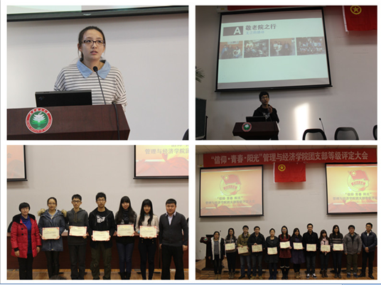 表彰會(huì)最后,彭老師宣讀了本次管理與經(jīng)濟(jì)學(xué)院團(tuán)支部等級(jí)評(píng)定最終結(jié)果,與會(huì)老師為各獲獎(jiǎng)團(tuán)支部頒發(fā)了證書(shū)以示祝賀并合影留念。