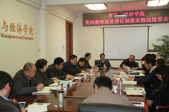 在檢查工作中,檢查組首先聽取了各單位黨政主要領導干部關于本單位落實黨風廉政建設責任制,推進懲防體系完成情況的匯報。認真檢查了各單位落實黨風廉政建設責任制的領導體制、工作機制和相關制度的建設和執行情況;領導干部完成黨風廉政建設責任制相關任務情況;新任處級干部工作交接情況和單位《黨風廉政建設責任書》的簽訂和執行情況;開展黨風廉政建設宣傳教育情況;“三重一大”,領導班子議事規則和院(處)公開制度的建立和執行情況。特別就各單位貫徹落實中央“八項規定”,查找“四風”突出問題及整改情況,各類收入事項的管理情況等工作進行了重點檢查。檢查組成員仔細查閱了工作制度、文件、工作報告匯編和會議記錄等相關資料,對涉及到的問題及時提出,詳細核查。各單位教授委員會、教師、機關工作人員、黨外人士、教代會工會等方面的代表對各單位落實黨風廉政建設責任制情況進行了測評。最后,檢查組組長結合各單位的匯報情況及工作實際對加強黨風廉政建設責任制的貫徹落實和領導干部廉潔自律等方面提出了工作要求。