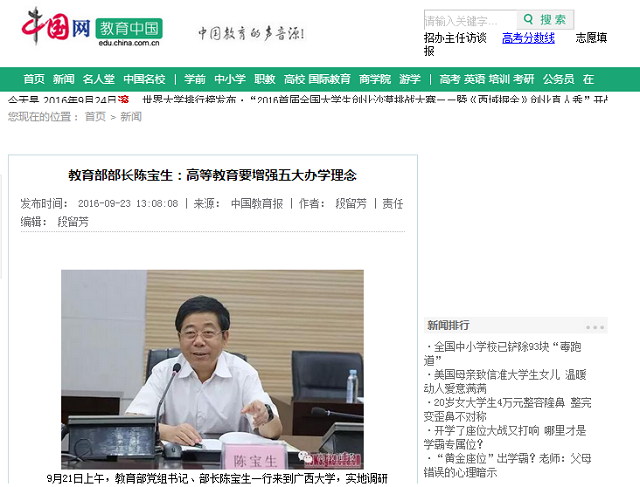 【學(xué)習(xí)園地】教育部長(zhǎng)陳寶生:高等教育要增強(qiáng)五大辦學(xué)理念