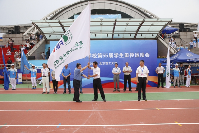 最后,北京理工大學常務副校長楊賓、中國人民公安大學副校長鄒振宇進行了會旗交接儀式,下一屆運動會將由中國人民公安大學承辦。至此,首都高等學校第55屆學生田徑運動會順利閉幕。