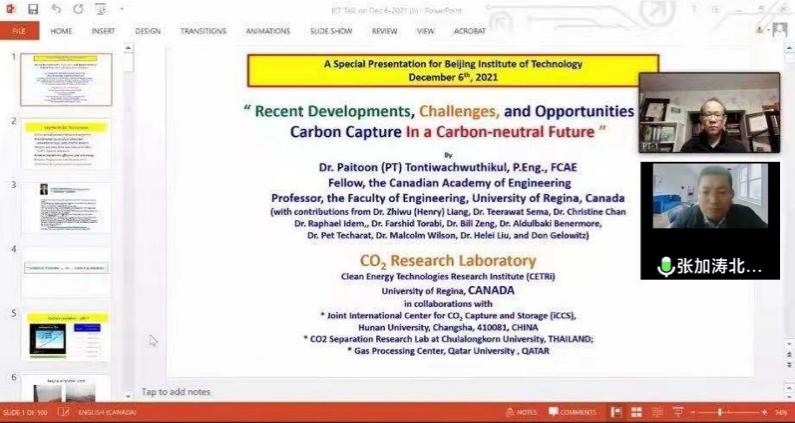 加拿大工程院士Paitoon Tontiwachwuthikul教授與北理工師生暢“碳”未來