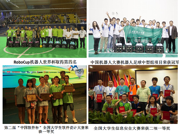八年來(lái),基地建設(shè)學(xué)生創(chuàng)新實(shí)踐專用場(chǎng)地近600平方米,投入專項(xiàng)經(jīng)費(fèi)數(shù)百萬(wàn)元,添置各類軟硬件設(shè)備百余套,組織學(xué)生積極參加國(guó)內(nèi)外各類創(chuàng)新實(shí)踐競(jìng)賽,共獲得省部級(jí)以上科技競(jìng)賽獎(jiǎng)勵(lì)1557人次,其中國(guó)際級(jí)152人次、國(guó)家級(jí)1290人次、省部級(jí)115人次,先后包括國(guó)際機(jī)器博弈錦標(biāo)賽金牌、中國(guó)機(jī)器人大賽特等獎(jiǎng)、全國(guó)信息安全大賽一等獎(jiǎng)、全國(guó)“挑戰(zhàn)杯”大學(xué)生課外學(xué)術(shù)科技作品競(jìng)賽一等獎(jiǎng)、全國(guó)機(jī)器人大賽機(jī)器人足球中型組冠軍等重量級(jí)獎(jiǎng)項(xiàng)。