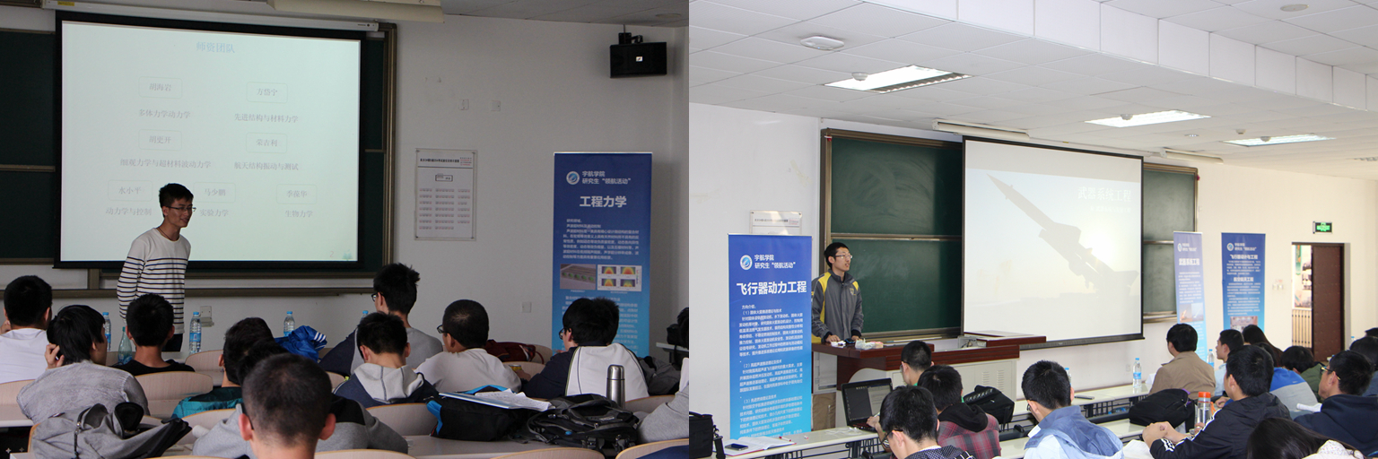 “宇航學院專業咨詢會”分為航空航天類和工力/探測兩場,介紹了飛行器設計與工程、航空航天工程、飛行器動力工程、武器系統工程、探測制導與控制技術、工程力學六個本科專業。咨詢會先由研究生進行宣講,隨后一年級同學可以自由在各專業展位處進行深入咨詢。