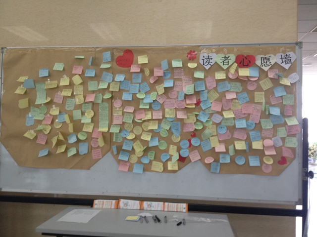 為了解廣大讀者對圖書館的需求與情感,暢通圖書館與讀者溝通渠道,圖書館在一層大廳專門開辟了“讀者心愿墻”,傾聽讀者心聲。廣大讀者熱烈回應,暢所欲言:“希望圖書館可以訂購更專業的經濟期刊”,“希望圖書館可以提供溫馨的咖啡廳”,“圖書館我的家”等等,讀者的聲音不斷匯集于此。圖書館黨總支書記鄭炎非常關注讀者留言,要求將其分類總結予以落實,不斷地提升服務品質,優化圖書館的環境。