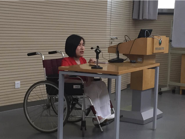 2016年5月15日,第26個“全國助殘日”,北京理工大學管理與經(jīng)濟學院攜手中國青年出版社,圍繞“陽光心態(tài)、勵志奮進、追逐夢想”主題,舉辦了一場特別的“525”心理健康節(jié)專題活動。來自河北唐山的35歲漸凍人醫(yī)生柴麗麗走向講臺,與管理學院研究生同學們一起,分享她“痛并明白著”的生命感悟。出席《痛并明白著——一個漸凍人醫(yī)生對生命的溫情凝望》作者演講暨新書首發(fā)式活動的還有中國青年出版社副總編輯李師東先生、新書責任編輯彭明榜先生、北京理工大學管理與經(jīng)濟學院副書記、副院長仇芳老師、管理與經(jīng)濟學院團委書記彭明雪老師,以及多家新聞媒體記者。