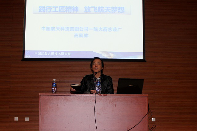 高鳳林是中國航天科技集團一院火箭總裝廠的一名特種熔融焊接工,也是廠里的火箭發(fā)動機焊接車間班組長。作為一名技藝精湛、態(tài)度嚴謹?shù)募紟煟@得了包括“全國十大能工巧匠” “全國高技能人才楷模”“全國勞動模范”在內(nèi)的諸多榮譽。近期在中央電視臺新聞頻道播出的《大國工匠》對高鳳林進行了專題報道,也讓我校師生十分期待與高鳳林的這一次近距離交流。