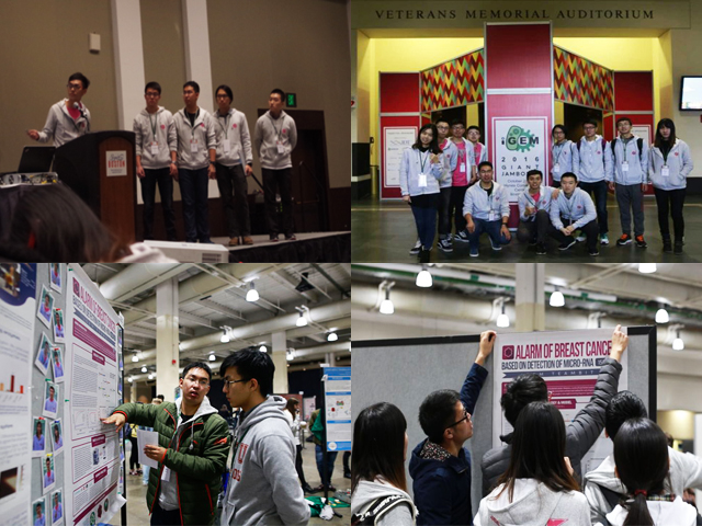 10月27日上午,本次大賽開幕式在波士頓海恩斯會議中心報告大廳舉行。BIT-China代表隊參賽項目為《P-SLACKiller》,該項目基于工程菌質粒丟失現象所研發的智能種群結構優化的基因調控系統,實現了自動監控與清除菌落種群中的低質粒濃度、工作效率低下的工程菌,提高生物產業的生產效率。這一項目可廣泛應用于科學研究以及工業生產中,該技術可能成為生物產業中能最高效提高質粒穩定性的方法之一。為實現該目的隊員們通過長達9個月的不懈努力和充分準備,取得了可喜的科研成績,為本次參賽打下基礎。