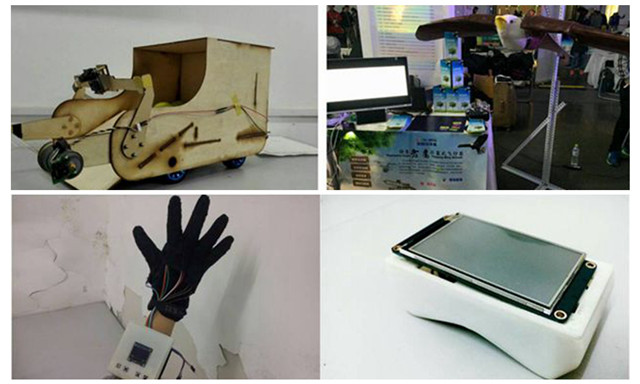 智能乒乓球收集車 (左上)仿生老鷹撲翼式飛行器(右上)