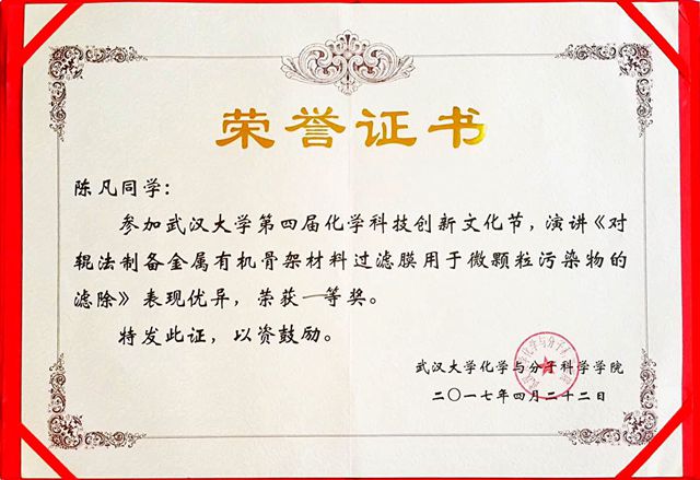 北理工學子在武漢大學第四屆化學科技創新文化節中獲得一等獎
