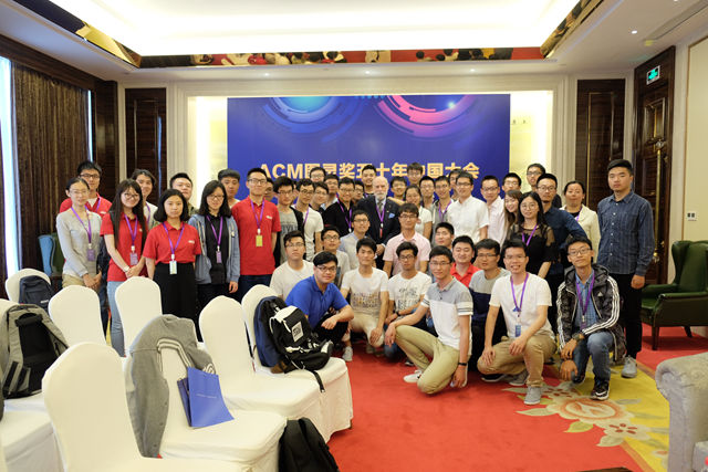 5月14日晚上,參賽團隊受邀出席“ACM圖靈獎五十年中國大會慶祝晚宴”及頒獎典禮。Vinton Cerf博士和教育部科技發展中心李志民主任一起為獲獎團隊頒獎。