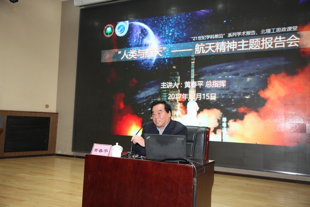 編輯:韓姍杉 審核:曲虹 閱讀次數:為培養學生熱愛航空航天事業的興趣和“特別能吃苦,特別能戰斗,特別能攻關,特別能奉獻”的航天精神,樹立報效祖國航空航天事業的遠大理想,2017年12月15日,北京理工大學宇航學院特別邀請我校杰出校友、長征二號F火箭總指揮黃春平研究員作“人類與航天”——航天精神主題報告會。北京理工大學副校長王曉鋒,原校紀委書記張敬袖,宇航學院黨委書記曲虹,副院長孫程、龍騰及部分教師代表出席了報告會,230余名學生參加了報告會。報告會由宇航學院黨委副書記、副院長方蕾主持。