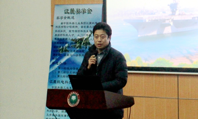 編輯:武穎 審核:范文輝 閱讀次數(shù):2017年12月28日,北京理工大學(xué)第十屆“江麓獎學(xué)金”答辯儀式在良鄉(xiāng)校區(qū)綜合教學(xué)樓報告廳隆重舉行。“江麓獎學(xué)金”由江麓機(jī)電集團(tuán)有限公司設(shè)立,旨在普及國防科技知識、宣傳國防科技發(fā)展前沿技術(shù)、培養(yǎng)合格的國防科技人才,自2008年設(shè)立以來每年都吸引著大批對軍事非常熱愛的本科生參與評選,本屆評出獲獎學(xué)生15名,每人獎勵6000元。