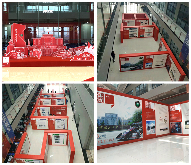 啟動儀式結束后,“奮斗的足跡——BIT· SME”圖展及研究所科研成果展臺正式開放。圖展以“BIT·SME”的形式呈現,以一幅幅生動的畫面和簡潔的文字,將學院及各個研究所自成立以來“與祖國共成長”的奮斗歷程展現在師生面前。圖展自“啟動日”起,將展出一個月時間。