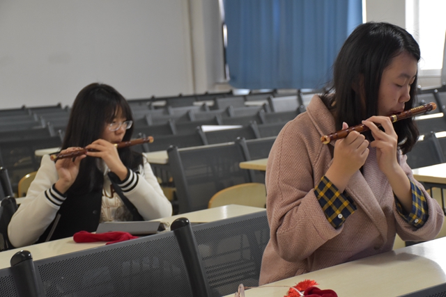 “每周一次的課程能讓我們?cè)谝魳分蟹潘勺晕摇⑻找鼻椴?,使我的大學(xué)生活更加豐富多彩?!泵鳙k班王煜天在參加了課程學(xué)習(xí)后感慨道。2019年3月23日,“樂·明問學(xué)堂”之“竹笛藝術(shù)欣賞與實(shí)踐”正式開課。書院邀請(qǐng)朋輩導(dǎo)師、信息與電子學(xué)院2018級(jí)本科生梅子鵬擔(dān)任竹笛課導(dǎo)師,開展為期14個(gè)學(xué)時(shí)的課程教學(xué)?!盾岳蚧ā肥菚鷤儗W(xué)習(xí)的第一首樂曲,大家除了學(xué)習(xí)吹奏技巧,還在悠揚(yáng)的笛聲中,體驗(yàn)《茉莉花》的意象和語言。竹笛藝術(shù)欣賞與實(shí)踐課程,讓學(xué)生初步了解并掌握了一定的竹笛演奏技巧,在對(duì)于竹笛這種傳統(tǒng)民樂的不斷了解之中,培養(yǎng)了對(duì)傳統(tǒng)民族音樂的鑒賞力,增強(qiáng)了對(duì)民族文化的認(rèn)同與文化自信。