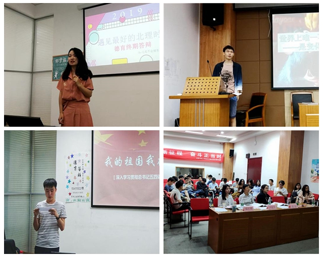 “通過(guò)學(xué)習(xí)習(xí)總書(shū)記在五四運(yùn)動(dòng)100周年上的講話,我又切實(shí)認(rèn)識(shí)了青年在中華民族偉大復(fù)興中扮演的重要角色,畢業(yè)后我將在中科院化學(xué)所攻讀研究生,以提升化學(xué)化工專(zhuān)業(yè)素養(yǎng),為祖國(guó)建設(shè)貢獻(xiàn)力量。習(xí)近平總書(shū)記六點(diǎn)要求的提出,為我們新時(shí)代中國(guó)青年指明了努力方向。”19821502班李佳珍在學(xué)習(xí)環(huán)節(jié)這樣分享了自己的感悟。理論學(xué)習(xí)環(huán)節(jié)的設(shè)置推動(dòng)實(shí)現(xiàn)了用思想理論武裝指引畢業(yè)學(xué)生成長(zhǎng)成才的目標(biāo)。“當(dāng)睇清世間所有定理又何用再怕,珍惜淡定的心境,苦過(guò)后更加清,萬(wàn)般過(guò)去亦無(wú)味但有領(lǐng)會(huì)留下……”10221501班彭懿鑫將最喜愛(ài)歌手陳奕迅的四首歌融入到個(gè)人德育答辯交流環(huán)節(jié)中,在歌聲中回顧并展望了自己的“大學(xué)、青春、人生”。“感謝所有老師們的辛勤付出,感謝事無(wú)巨細(xì)關(guān)心支持我們的輔導(dǎo)員,感謝家人一直以來(lái)鼓勵(lì)包容支持,感謝一起成長(zhǎng)的同學(xué),感謝四年來(lái)所有的相遇,感謝北京理工大學(xué)。”10211501班精心錄制“一路走來(lái),感謝有你”主題視頻,言語(yǔ)樸素卻又在真情實(shí)意中感謝父母老師,祝福同學(xué)室友,感恩青春年華。
