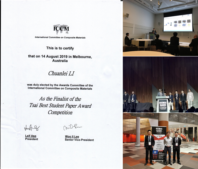 編輯:吳楠 審核:徐寶升 閱讀次數(shù):8月11日至16日,第22屆國際復(fù)合材料大會(ICCM-22)在澳大利亞墨爾本會展中心舉行,我校先進(jìn)結(jié)構(gòu)技術(shù)研究院2017級力學(xué)專業(yè)博士生李傳檑提交的學(xué)術(shù)論文《Defect characterization and mechanical properties of multi-layer lattice structures》入圍“Tsai最佳學(xué)生論文”獎。國際復(fù)合材料大會始于1975年,每兩年召開一次,由國際復(fù)合材料委員會主辦(ICCM),是全球復(fù)合材料領(lǐng)域歷史最長、規(guī)模最大、最具權(quán)威的學(xué)術(shù)研討會。