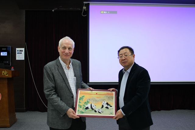 報告結(jié)束后,方岱寧院士為Needleman教授頒發(fā)了北理工“百家大講堂”的授課證書,同時送上了象征著友好、和平和團結(jié)的熊貓刺繡,表達了對Needleman教授的感謝以及和Needleman教授合作的期望。