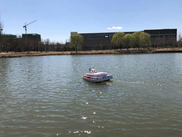 無人艇在良鄉校區北湖測試航行
