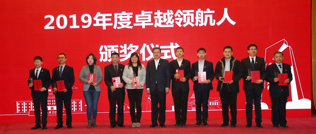 張軍為2019年度卓越領(lǐng)航人頒發(fā)證書、獎(jiǎng)杯。