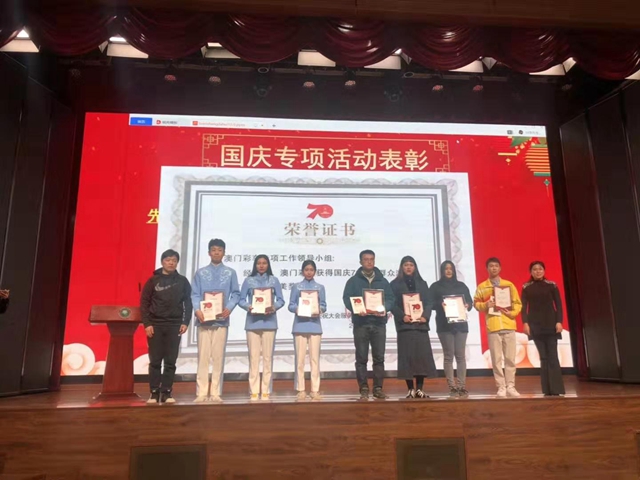 在國慶70周年慶祝活動(dòng)中,學(xué)院、書院學(xué)子積極參與到了群眾游行、廣場合唱、聯(lián)歡活動(dòng)、科技保障、志愿服務(wù)等工作中,圓滿完成任務(wù)。其中7位學(xué)子表現(xiàn)優(yōu)秀,榮獲校級(jí)“優(yōu)秀個(gè)人”獎(jiǎng),張艦月和馬曉寧為同學(xué)們頒發(fā)了榮譽(yù)證書和贈(zèng)書。