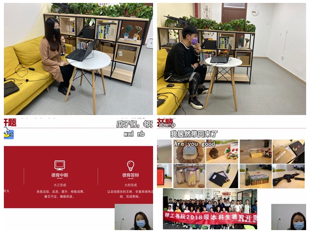 在“以行為徑,成就夢想”德育開題溝通展示環(huán)節(jié)中,各班利用“騰訊會議”“企業(yè)微信”等線上交流平臺召開主題班會,充分發(fā)揮各班同學主觀能動性,在德育開題過程中添加了各種新穎趣味的環(huán)節(jié):精工1902班開展了“人生招標會”,同學們以投資人的身份對各個“人生板塊”進行投資規(guī)劃;精工1905班、1913班、1923班等同學在班會前以宿舍為單位展開了熱烈討論;精工1921班對同學們“以筆繪夢”環(huán)節(jié)的展示進行了評比,選出“最用心展示獎”……全體同學與德育導師、學育導師和輔導員們齊聚云端,同學們暢談大學規(guī)劃和職業(yè)理想,導師們指點迷津引領(lǐng)航向,在共享中心靈共映,在互動中升華共融。
