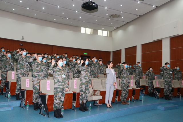 動員會上,黨委武裝部部長王泰鵬布置了軍訓工作整體安排,對帶隊干部提出具體工作要求。指導員耿寶群代表軍訓帶隊干部發言,承諾將服從指揮、履行職責、關愛學生,保證完成各項任務。全體軍訓帶隊干部進行就職宣誓。